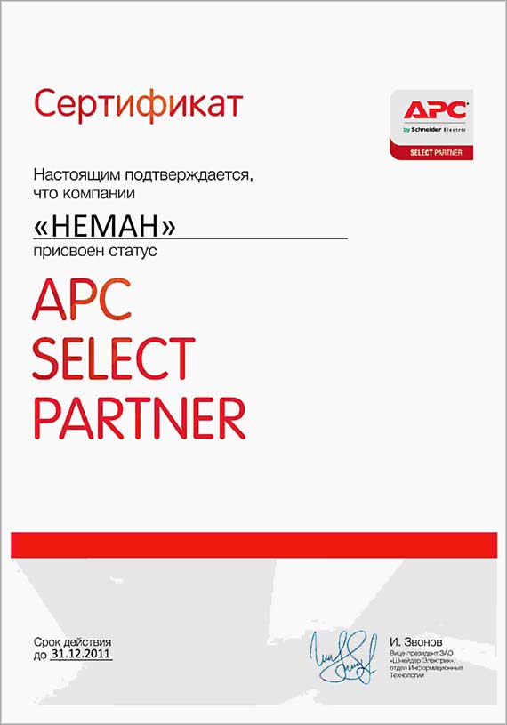 Компания «НЕМАН» является сертифицированным партнером APC, RAD, Cisco