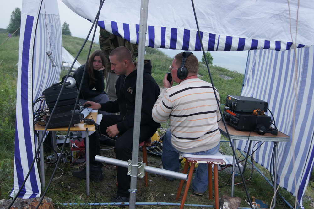 Команда компании «НЕМАН» в составе RW9OW, RA9UIV/9, UA9ZBQ/9, UA9ZAG, приняла участие в соревнованиях. Позиция располагалась на самой высокой горе Салаирского кряжа – г. Кивда — 622м. над уровнем моря. Около 1000 км пути и пять дней в полевых условиях пролетели незаметно. Горка нас встретила мелким дождиком и плотным туманом, такая погода продержалась практически все 4 дня, изредка налетал шквальный ветер и гроза. Несколько раз приходилось прятаться от грозы в машинах. Особенно нам «удружил» плотный туман, который «выключил» прохождение на 1296МГц, такое ощущение, что от антенны отвалился кабель — с трудом удавались связи на 100-150км. По «закону Мёрфи» уже на следующий день после соревнований стало солнечно — грозы прошли, вот так бывает, но с природой не поспоришь. Горка с массой растительности, живности, по ночам суслики героически растаскивали пакеты с мусором, в траве пищали мыши, на склоне в камнях видели змею, забегали в гости собаки-лайки с пасеки, местные говорят, что рядом ходит медвежонок — ворует мед. Наелись клубники, кто любит чай с травами — набрали разных видов трав.