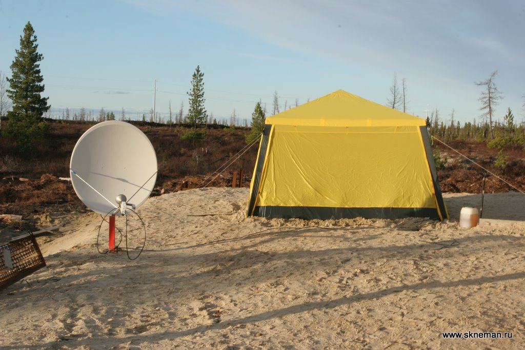 Затраты на развертывания спутникового терминала были минимальны, всего за час–полтора после приземления бригада разворачивала палатку и спутниковый терминал. Дуплексного канала 512 Кбит/с вполне хватало для комфортной работы, в том числе и для трансляции видеоизображения с площадок. Антенны 1.2 м было достаточно для обеспечения устойчивой связи даже при плохих погодных условиях. В качестве резервного канала на крайний случай была предусмотрена КВ-связь.